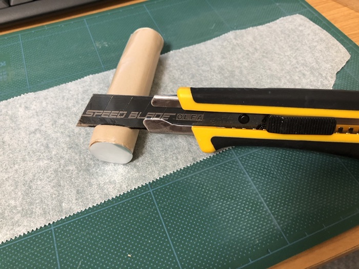使いたい分量またはそれよりも少ない量をカッターナイフで切り取ります。