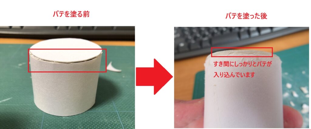 パテを使うことで隙間が埋まり、さらに紙自体を丈夫にしてくれます。